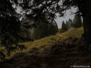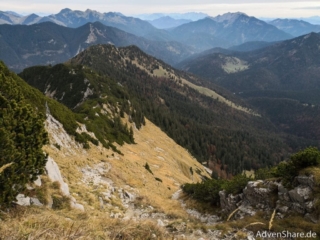 Die aussichtsreiche Tour startet im Suttengebiet und ist dadurch vergleichsweise wenig besucht. Der Aufstieg auf einem Fahrweg ist nicht besonders spannend, aber gut zum Warmlaufen. Anschließend geht ein schmaler Weg, der sehr ungleichmäßig mit großen und kleinen Steinen gepflastert zu sein scheint, ab und verläuft bis zu einer kleinen Hütte, die man am liebsten als Ferienhäuschen hätte. Der weitere Weg auf zweidrittel Höhe des Kessels unterhalb des Risserkogels erlaubt schon eine grandiose Aussicht. Wer dem schwarz gepunkteten Weg auf den Gipfel folgt, sollte unbedingt etwas Trittsicherheit und Schwindelfreiheit mitbringen. Der Weg ich nicht schwer, aber die Felsrinne, die es emporzusteigen gilt, verzeiht keine Fehler. Der Alpenlehrpfad ist sehr interessant und bietet aufgrund des Gratwegs „Auf der Wurz“ eine gelungene Abwechslung. Vom Setzberg hat man nochmal eine tolle Aussicht auf den Tegernsee und den Wallberg sowie zurück auf die gesamte Tour. Beim Abstieg lohnt der kurze Abstecher zum Wasserfall.