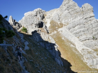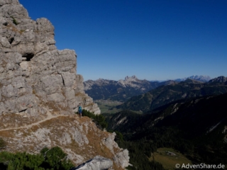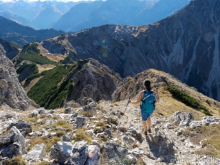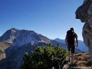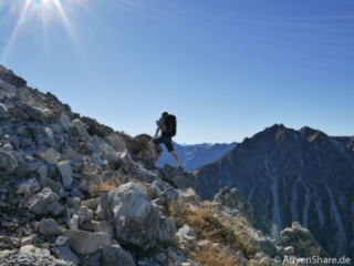 Sonne pur und frische Luft durften wir die ganze Tour über genießen. Auf dem felsigen Untergrund macht das stetige Steigen Spaß. Kraxelstellen gab es leider nur eine, dafür haben uns die tollen Bergpanoramen begleitet. Insbesondere die Sicht vom Gipfel auf den Aufstiegsweg in der Nordwand des Gaishorns hat es Joe angetan. Auch diese Tour lässt sich wunderbar durch weitere Gipfel, wie dem des Gaishorns oder des Pontens ergänzen.