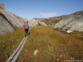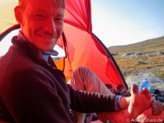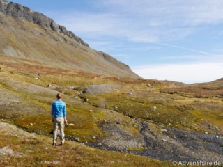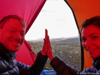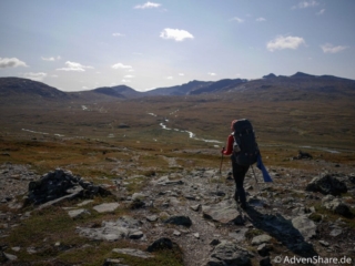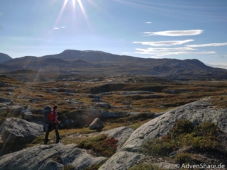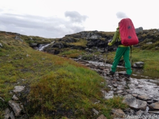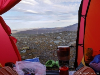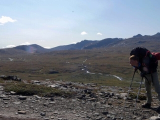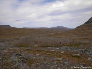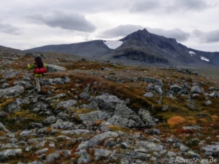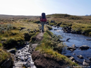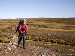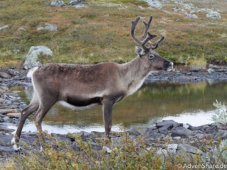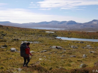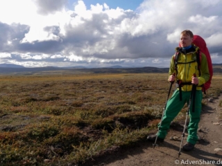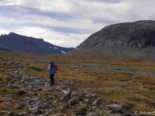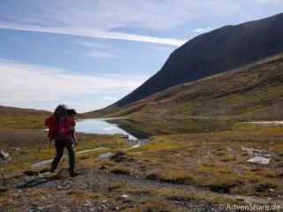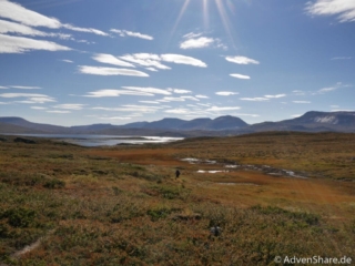 T2 / T3 – Atemberaubende Landschaft entlang des gut markierten Wegs. Mit etwas Kondition und Kraft sind auch die steinigen und hügeligen Abschnitte gut machbar. Die Übernachtung in den Hütten ist auch möglich, wobei der Anblick der Rentiere morgens am Zelt unbezahlbar ist.