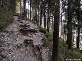T2 – breiter Fahrweg, einzig der Winterweg ist schmal und von Wurzeln durchzogen und steinig. Zum Gipfel gelangt man über kleine Felsstufen auf den letzten Höhenmetern, spannender ist der direkte Weg und dann nach dem Gipfelkreuz noch etwas weiter.